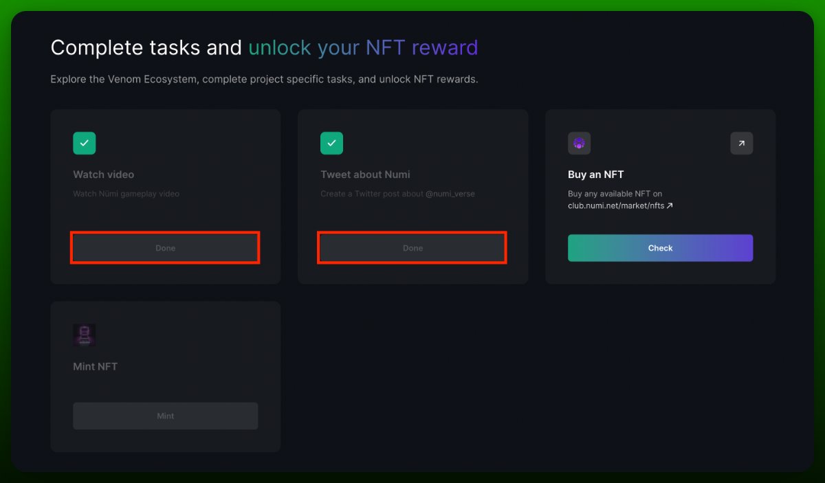 • Перейдите на http://venom.network/tasks/numi
