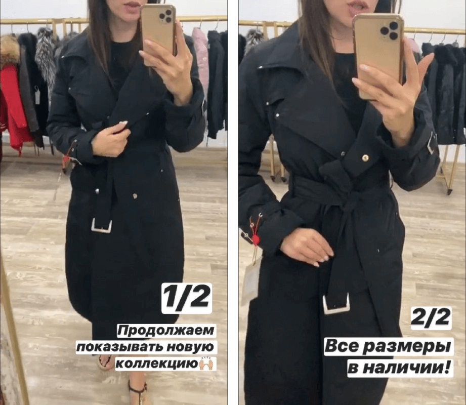 Если ваш магазин специализируется на одежде, в Stories можно хоть каждый день публиковать разные примеры образов для вдохновения или самим снимать трендовые видео с переодеванием.