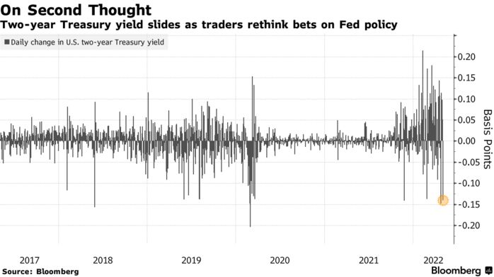 Australian debt surged in the wake of a pronounced slump in shorter-maturity Treasury yields as traders scaled back bets on aggressive monetary tightening. There’s no cash Treasuries trading in Asia due to a Japan holiday.