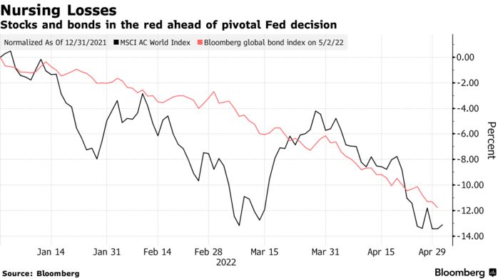 The Fed is expected to raise rates by 50 basis points Wednesday and detail plans for the reduction of its balance sheet. Key for markets will be whether Chair Jerome Powell’s commentary contains any hawkish surprises that could stoke concerns about the threat of U.S. slowdown as borrowing costs climb.