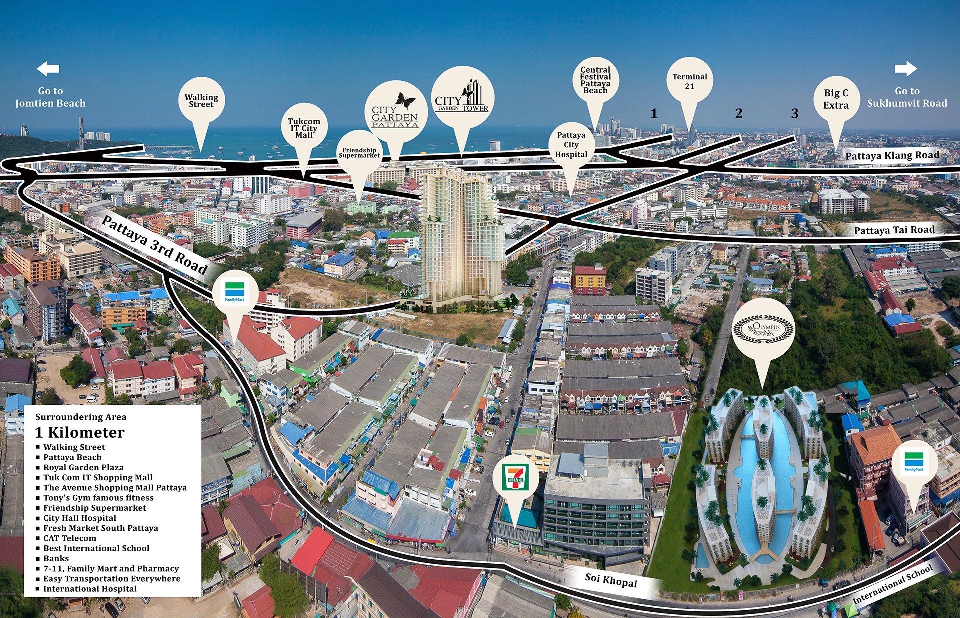 Проект расположен в Центральном районе, в пешей доступности от Walking street, Beach road и Central festival.