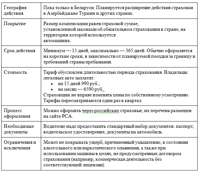 - простота оформления, доступность для водителей, у которых нет возможности получить Зеленую карту;