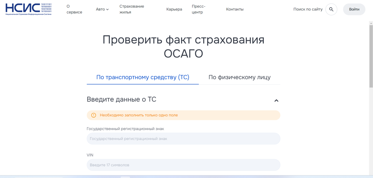 На новом портале можно проверить факт страхования по полису ОСАГО двумя способами — по данным о транспортном средстве и по сведениям о физическом лице.
