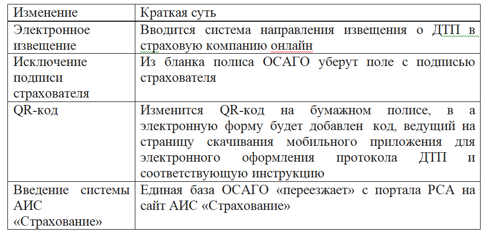 Ещё 1 апреля 2024 года датированы новые правила об ОСАГО. Однако вступили в силу они совсем недавно, а некоторые пункты и вовсе начали действовать только с 1 января 2025 года. Документ охватывает изменения сразу в нескольких сферах обязательного страхования. Система ОСАГО в нашей стране, по сути, только формируется, а потому претерпевает значительные изменения. Можно отметить общий тренд на цифровизацию всех процессов (например, внедрение возможности направить извещение о ДТП электронно) и упрощение как процедуры оформления, так и в целом работы с полисом. Система адаптируется к современному темпу жизни. Если раньше для оформления ОСАГО нужно было ехать в офис страховщика с документами, стоять в очереди, точно таким же способом привозить бумажное извещение о ДТП, то теперь ситуация кардинально меняется. Полис ОСАГО уже давно оформляется за 5 минут в электронном виде, и извещение об аварии страховщику тоже может быть направлено онлайн, без необходимости личного визита.Также одно из важнейших изменений — с 1 октября АИС «Страхование» будет окончательно присуждён статус единой базы ОСАГО. В течение полугода новая система интегрировалась в работу сферы страхования. Из базы РСА, ранее являвшейся главной информационной базой ОСАГО, переносились данные, введённые до 1 апреля 2024 года. Теперь все сведения о договорах страхования будут содержаться в обновлённой системе АИС «Страхование».Краткий обзор изменений в сфере ОСАГО с 1 октября 2024 года