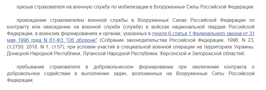 Основания для возврата стоимости ОСАГО участникам СВО