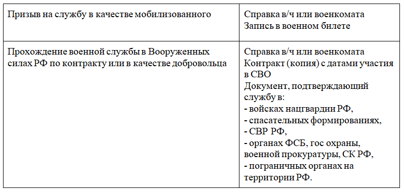 Этот перечень примерный, так как единой формы документа об участии военнослужащего на СВО нет. Обычно выдают справку по форме No 5 (для контрактников) или для мобилизованных.