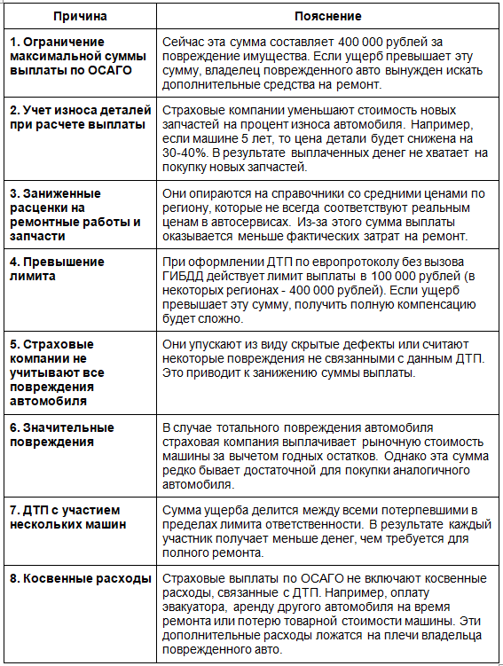Ситуации, когда ОСАГО не покрывает полный ущерб