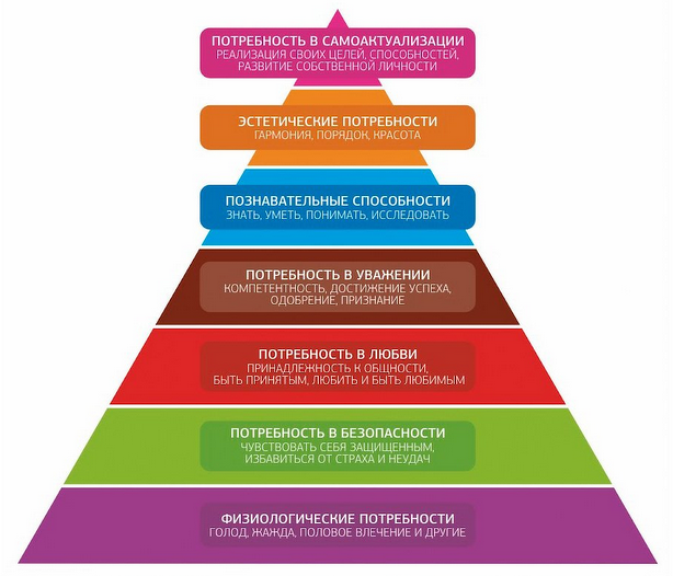 Всем людям нужны еда и вода, одежда, дом, деньги. Есть и более специфические потребности, характерные для малых групп людей, у которых обеспечены базовые потребности: путешествия, обучение, исследования, развитие личности, духовный рост, красота, и т.д.
