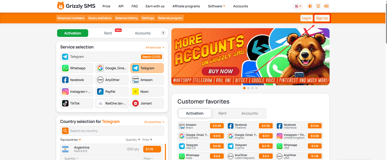 Grizzly SMS — это сервис, предоставляющий виртуальные номера для приёма SMS-кодов подтверждения от популярных онлайн-платформ, включая Telegram, Google, TikTok и Amazon